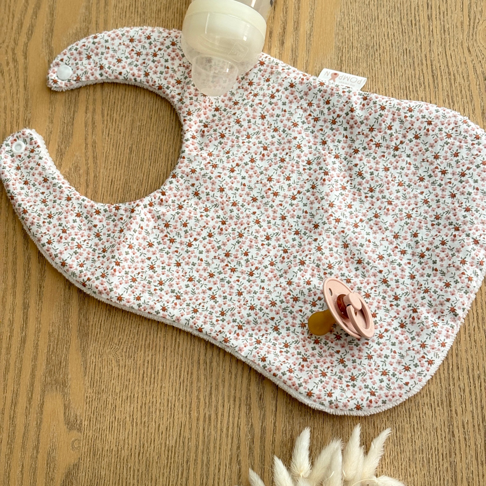 Face avant en coton à motif et dos du bavoir en micro éponge de bambou Oeko tex blanche