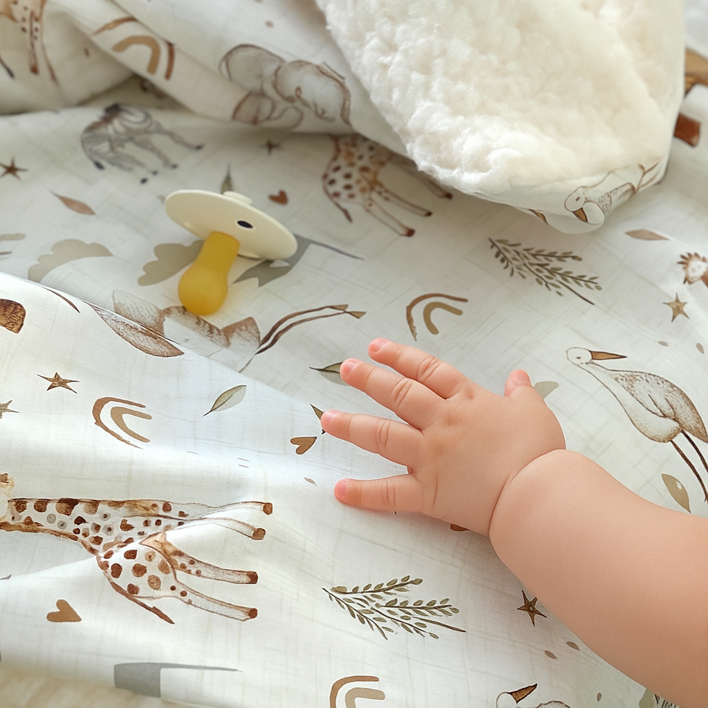 NOUVEAU Couverture bébé animaux de la savane moumoute sherpa écru