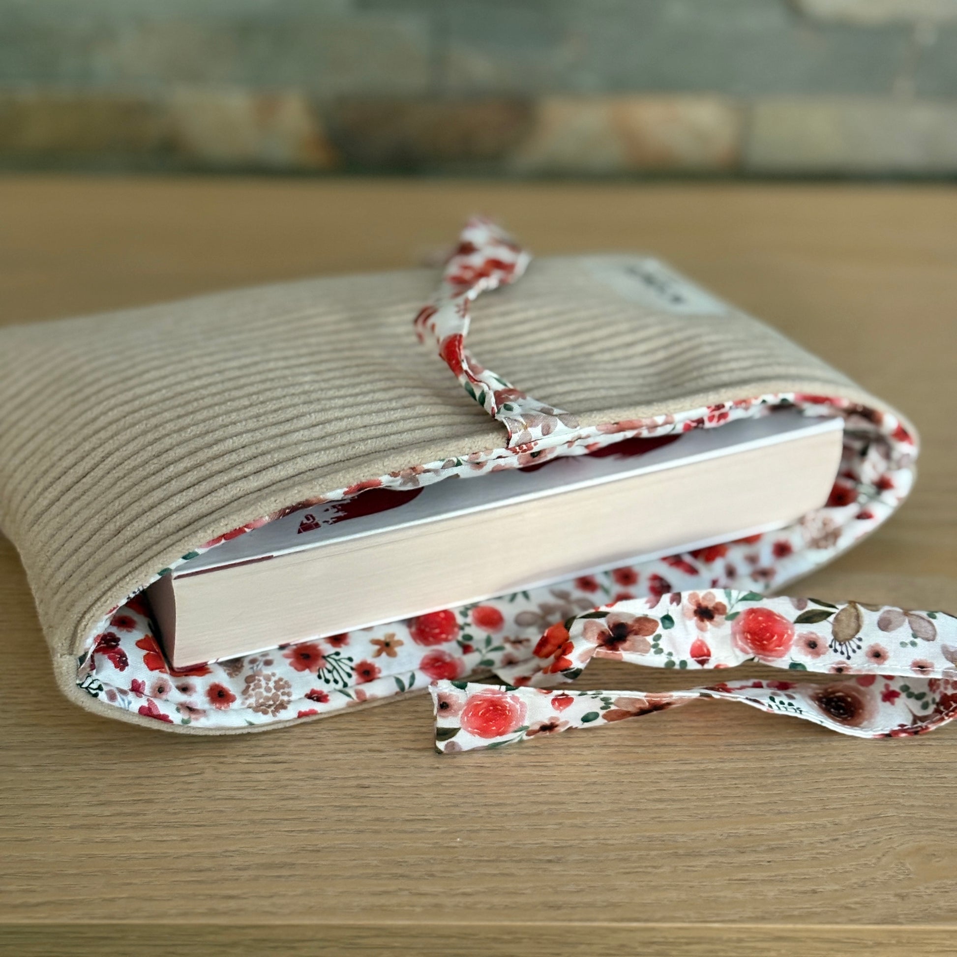 Extérieur en velours grosses côtes couleur sable et intérieur en coton motif fleurs