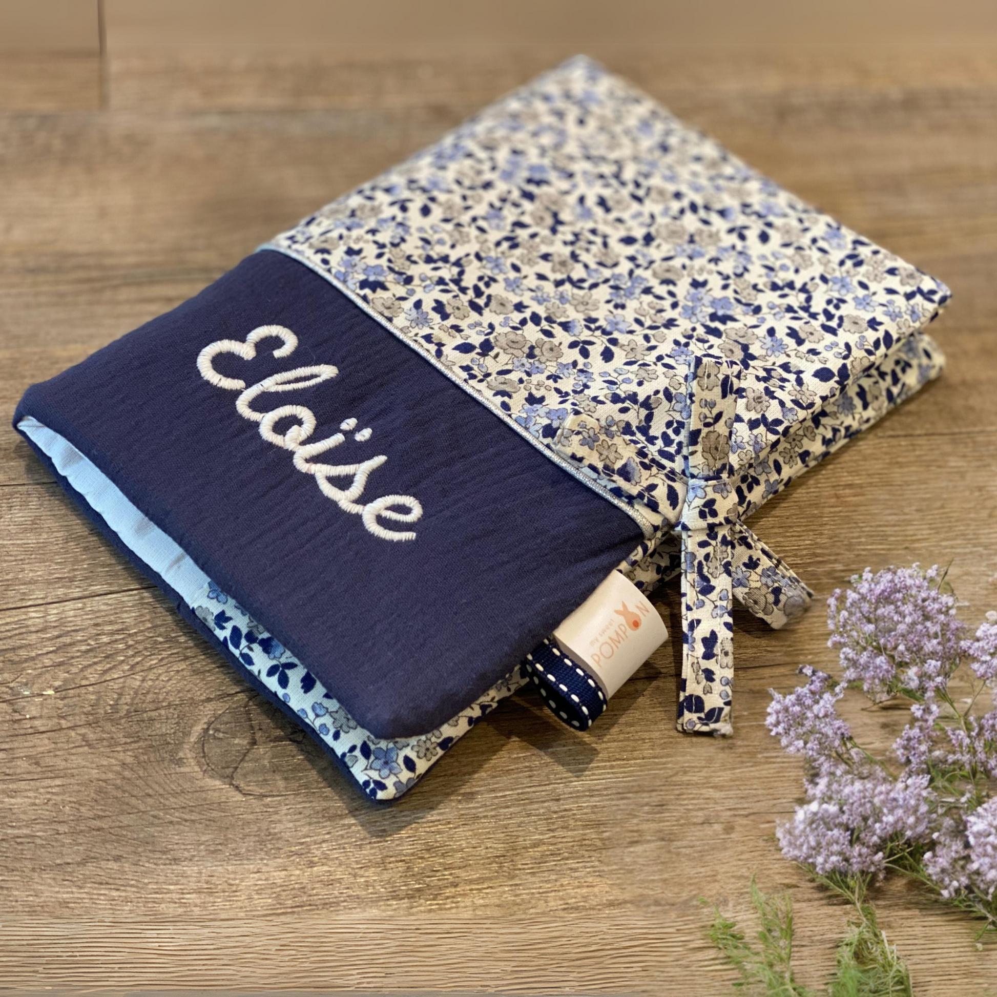 Protège carnet de santé personnalisable bébé fille fleurs bleues Collection Eloïse