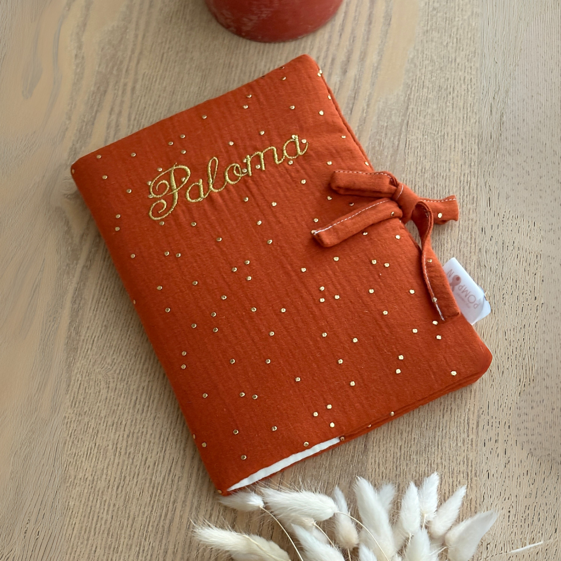 Protège carnet de santé personnalisé en gaze de coton -Couleur au choix